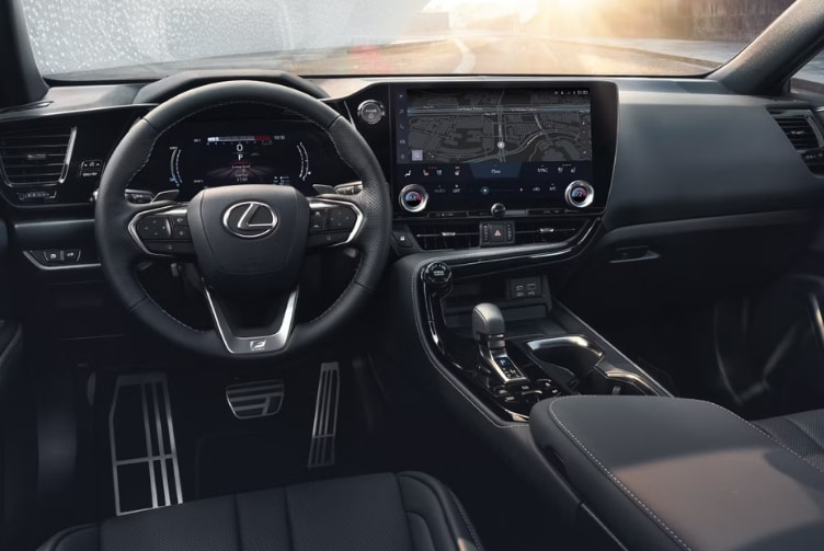 The Lexus NX offers different fuel economy depending on the powertrain. The hybrid NX 350h can reach about 41 city / 38 highway MPG, while the plug-in hybrid NX 450h+ delivers up to 84 MPGe and around 37 miles of electric-only driving.